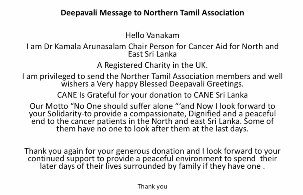 2. Cancer Aid For North/East (Sri Lanka / Jaffna) CANE UK: